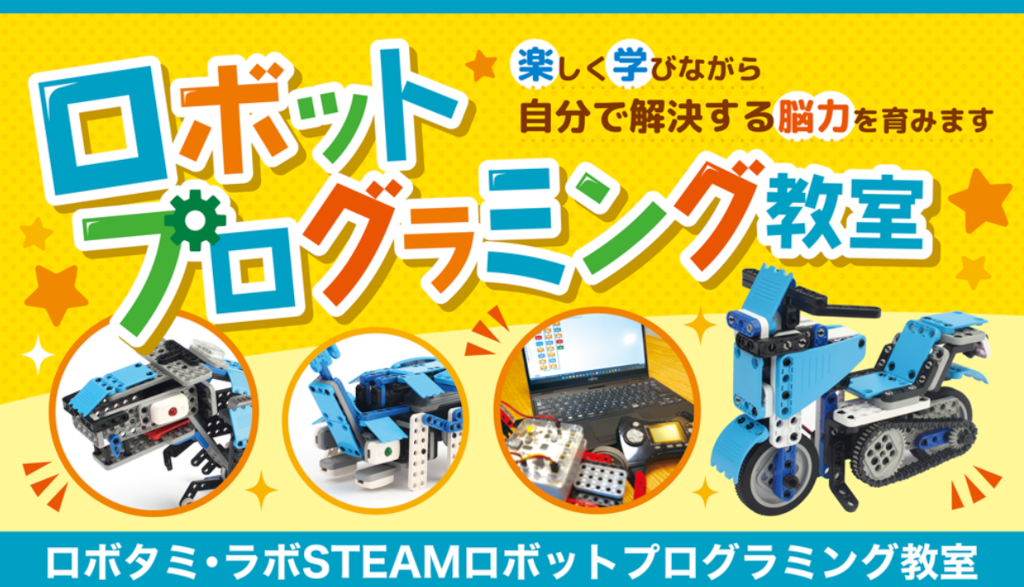 ものづくりスペース瀬谷で開校されている、ロボットプログラミング教室です。全45種類のロボットを毎月1体のペースで組み立て、プログラミングで動かします。